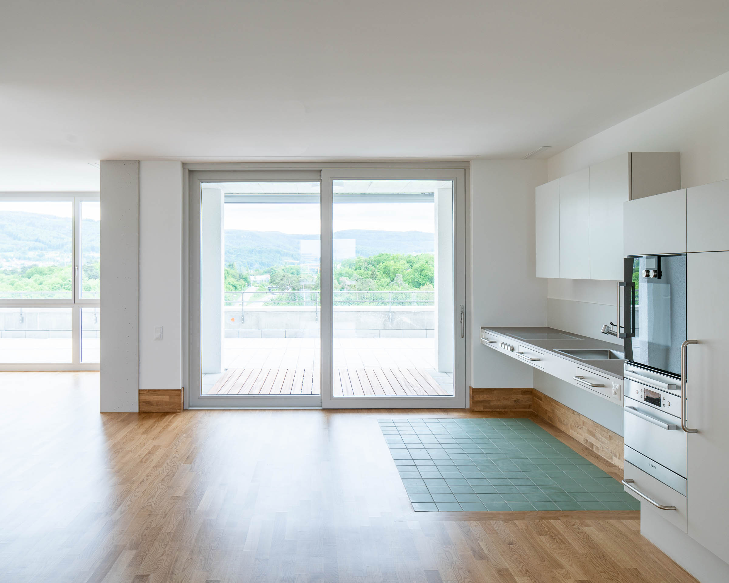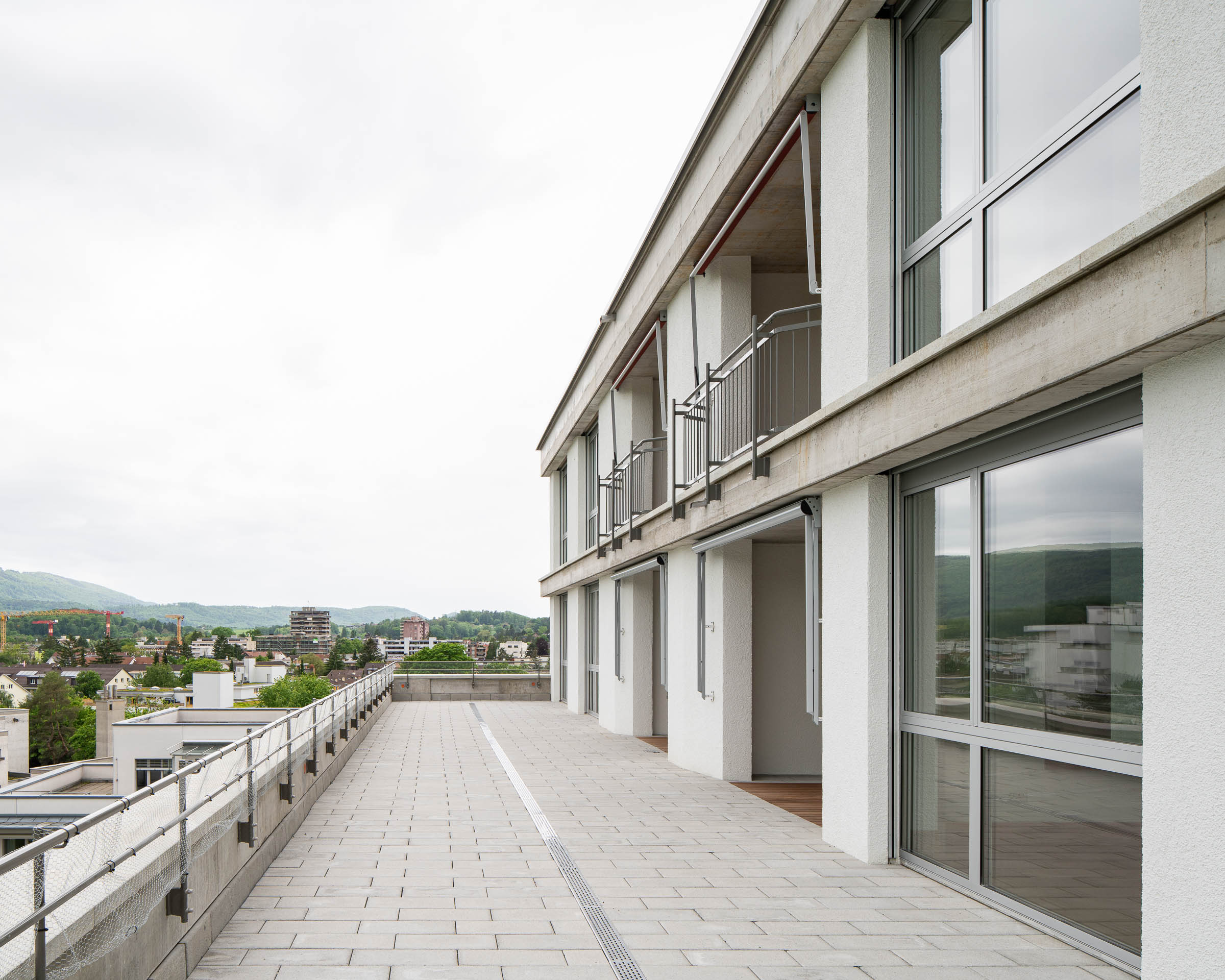 - Loggia (9.5 m2) und 36.6 m2-Anteil an der grosszügigen Dachterrasse im 5. Stock