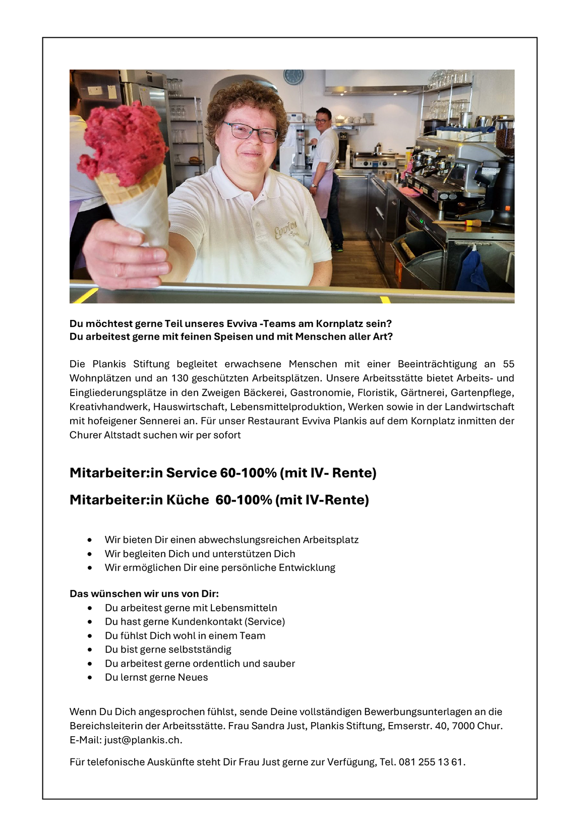 Das Restaurant/Gelateria Evviva Plankis ist ein Projekt der Integration.