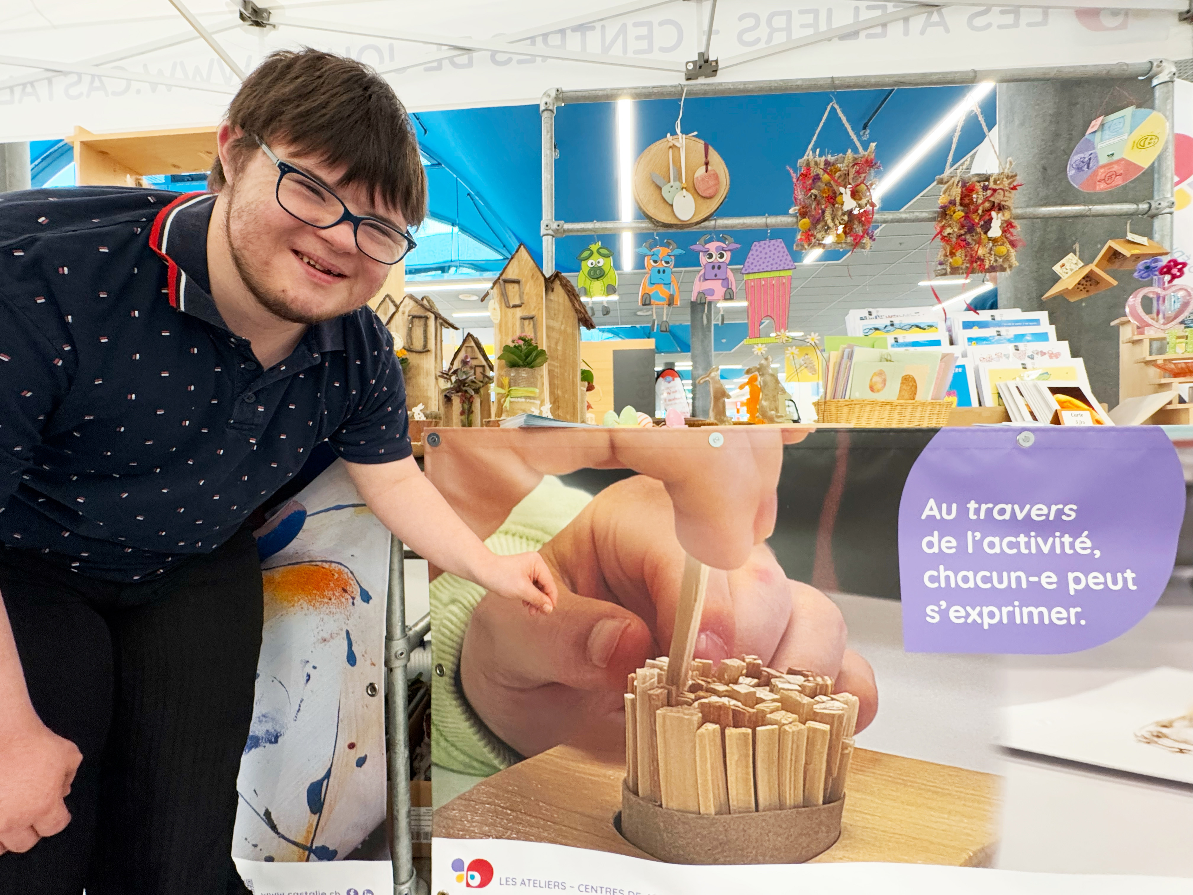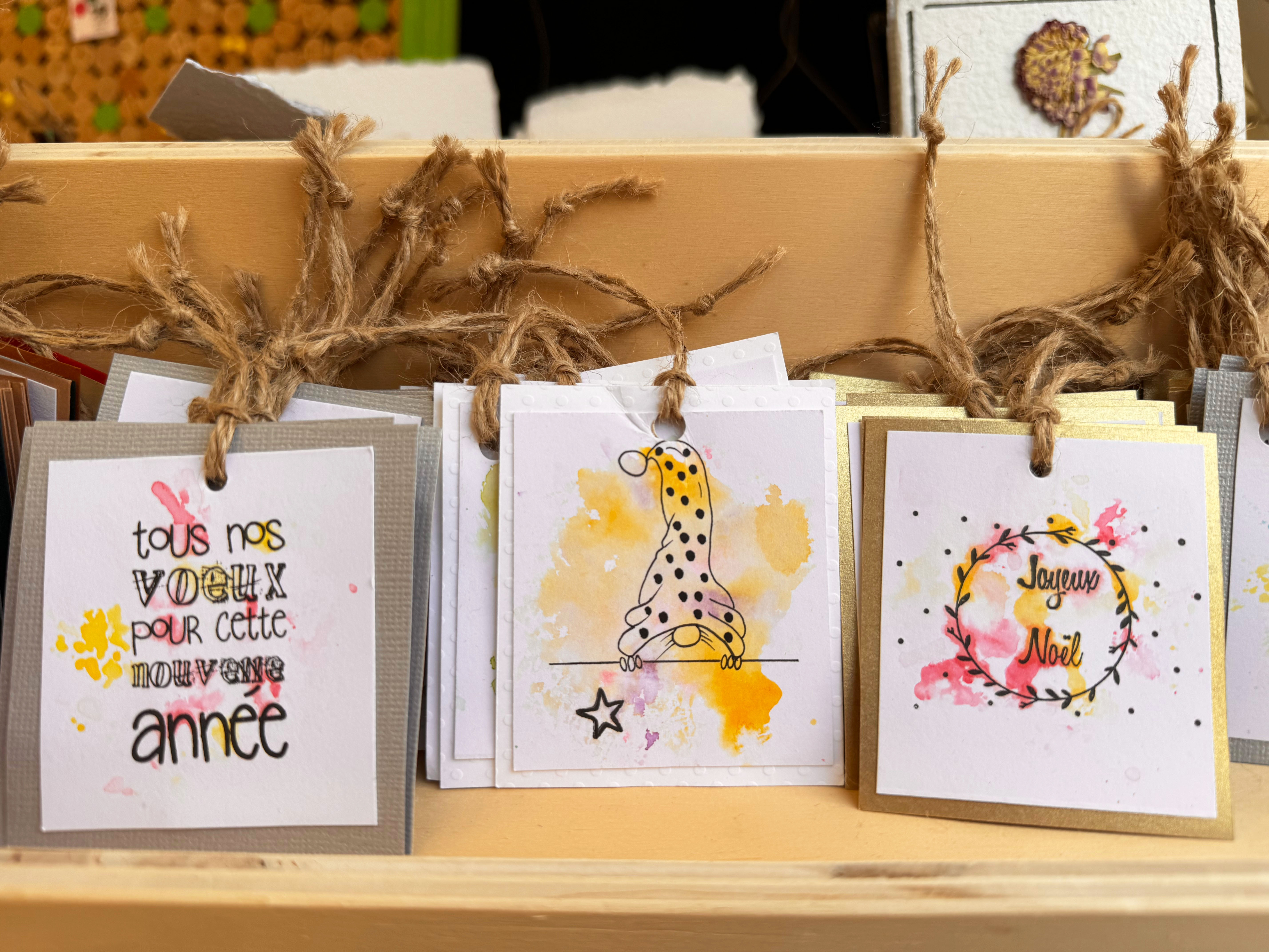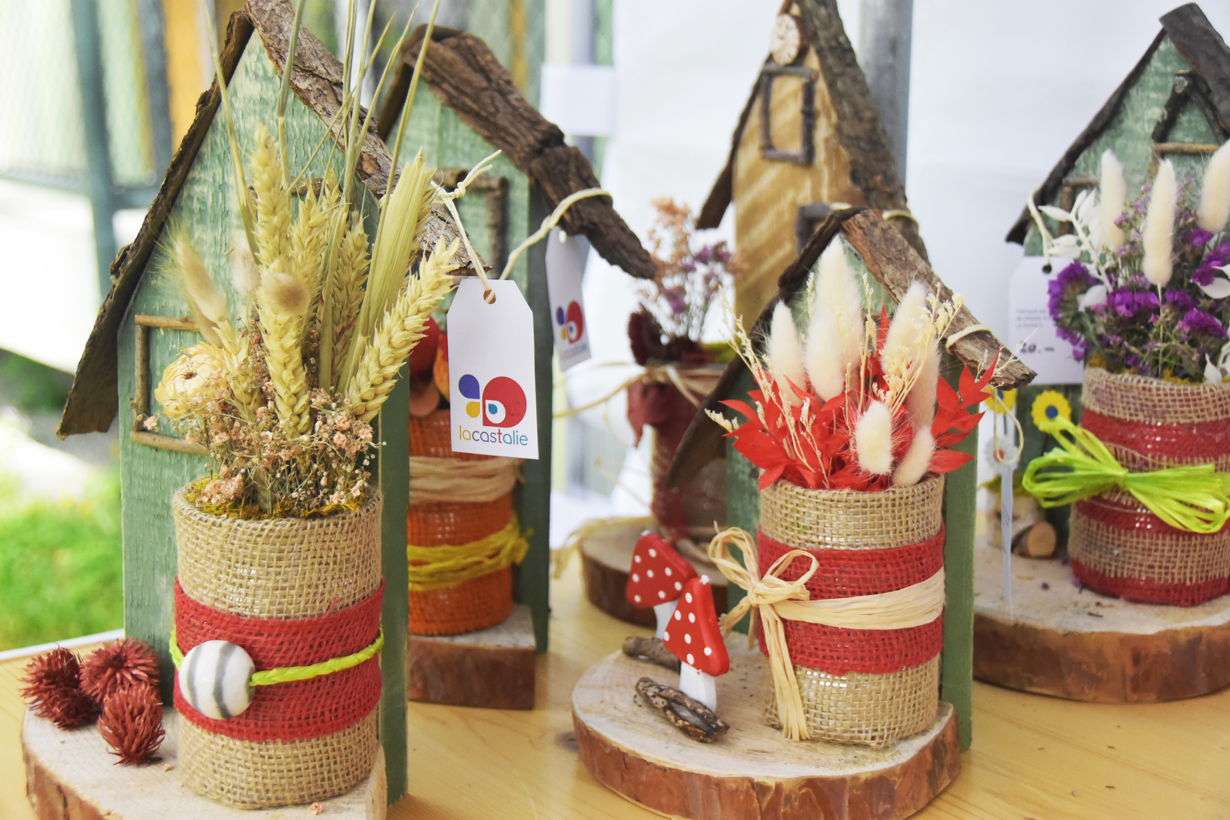 • Créations : cartes artisanales, décorations de Pâques et de Noël, bijoux, réalisations en bois, tissage, poterie, k-lumets, hôtels à insectes, etc.