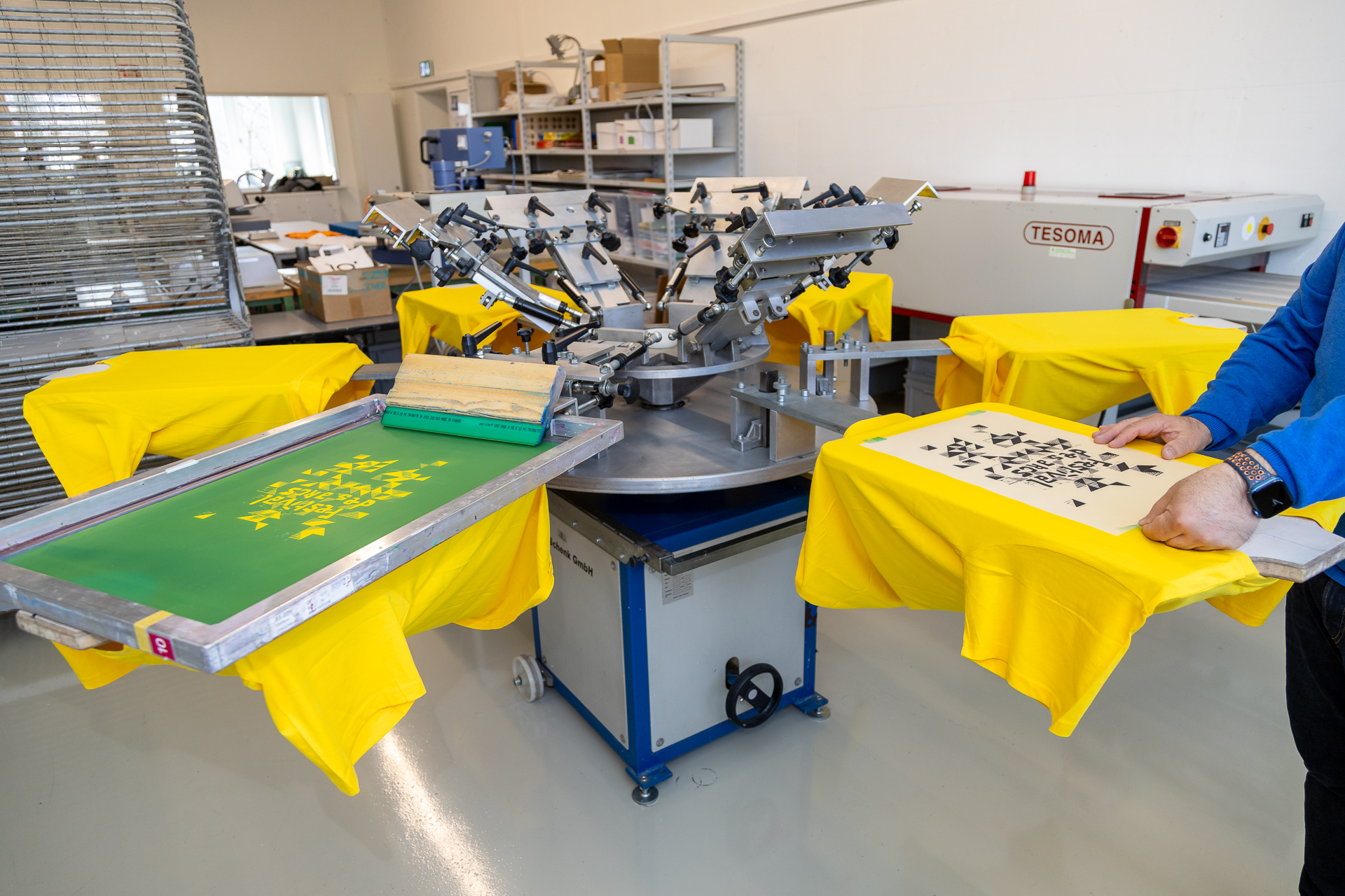 - Sie drucken auf Textilien. Zum Beispiel auf T-Shirts oder Pullover